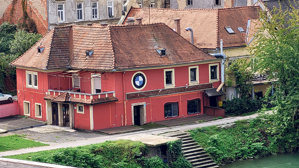 Tanja Brandmayr: Abschließend noch ein paar kleine Maribor-»Stadtblicke«: Du weiß nicht zufällig was über das Haus mit dem selbstgemalten BMW-Zeichen, das so eigentümlich und etwas heruntergekommen mitten im Zentrum steht? Ich vermute, es wird auch bald gentrifiziert sein, daneben wurden bereits größere neue Gebäudekomplexe gebaut. Wir hatten in Maribor einige Gespräche über die Kapitalisierung und den Ausverkauf Sloweniens.